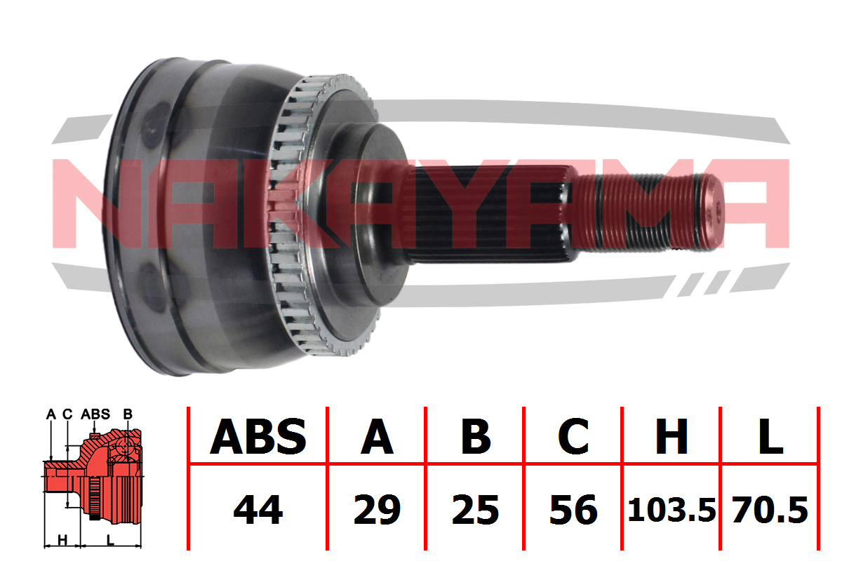 Наименование: ШРУС внешн. к-кт NISSAN X-TRAIL 01-, MAXIMA 95-, CEFIRO 00- (29x25x174x56 ABS:44)