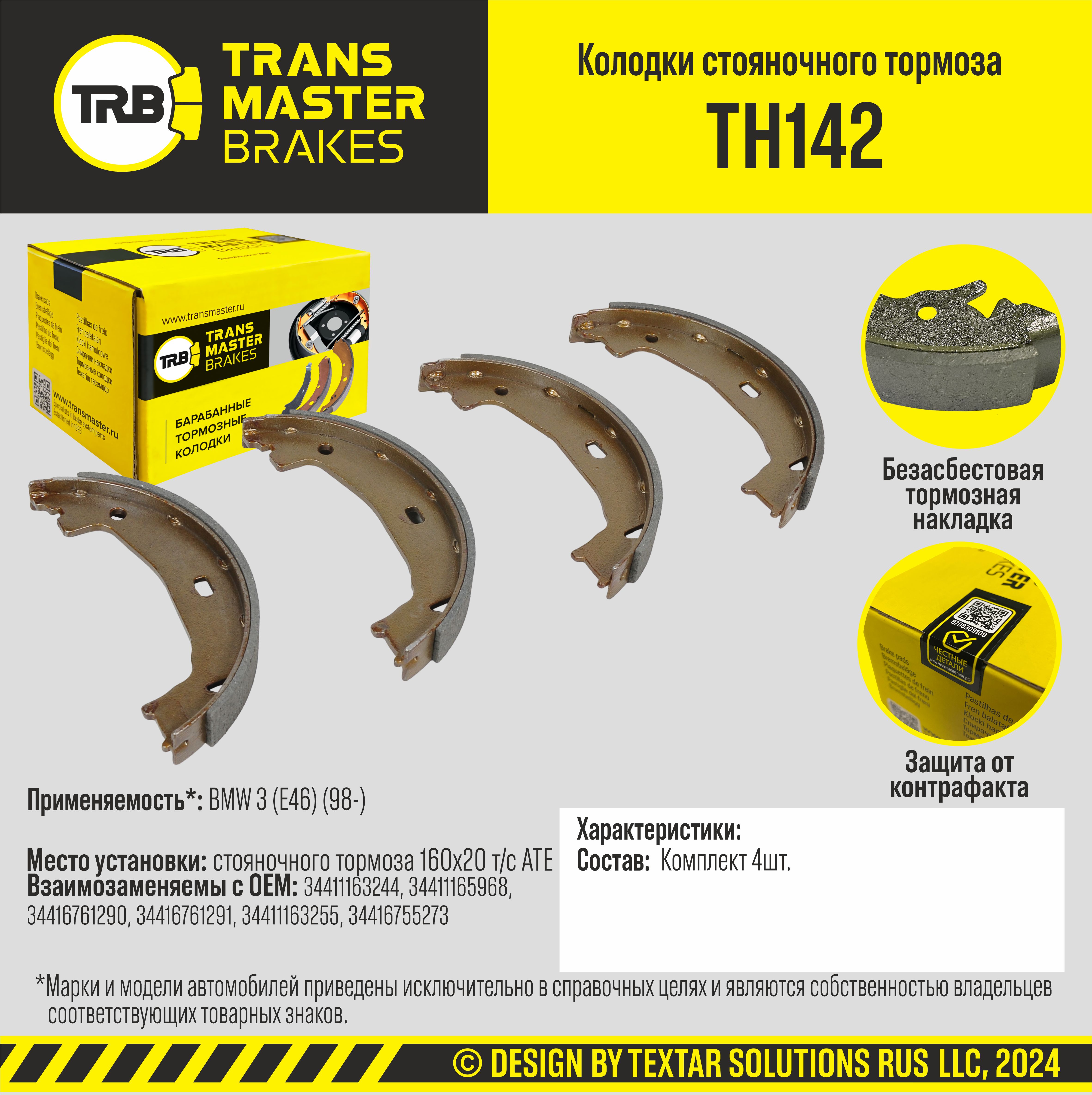 В 2023 году в рамках ребрендинга была обновлена упаковка, теперь детали TRANSMASTER BRAKES®(TRB®) продаются в более привычной для европейских потребителей желтой упаковке.