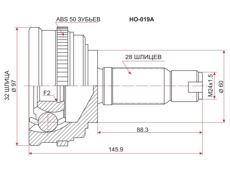 Наименование: Шрус (Спереди/ Наруж) Honda Accord 89-03 / Ascot 93-97 / Inspire 95-03 / Prelude 91-01