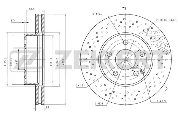 Диск тормозной MB C-Class (204) 07- передний вентилируемый 294,6 х 28 Zekkert BS5625
