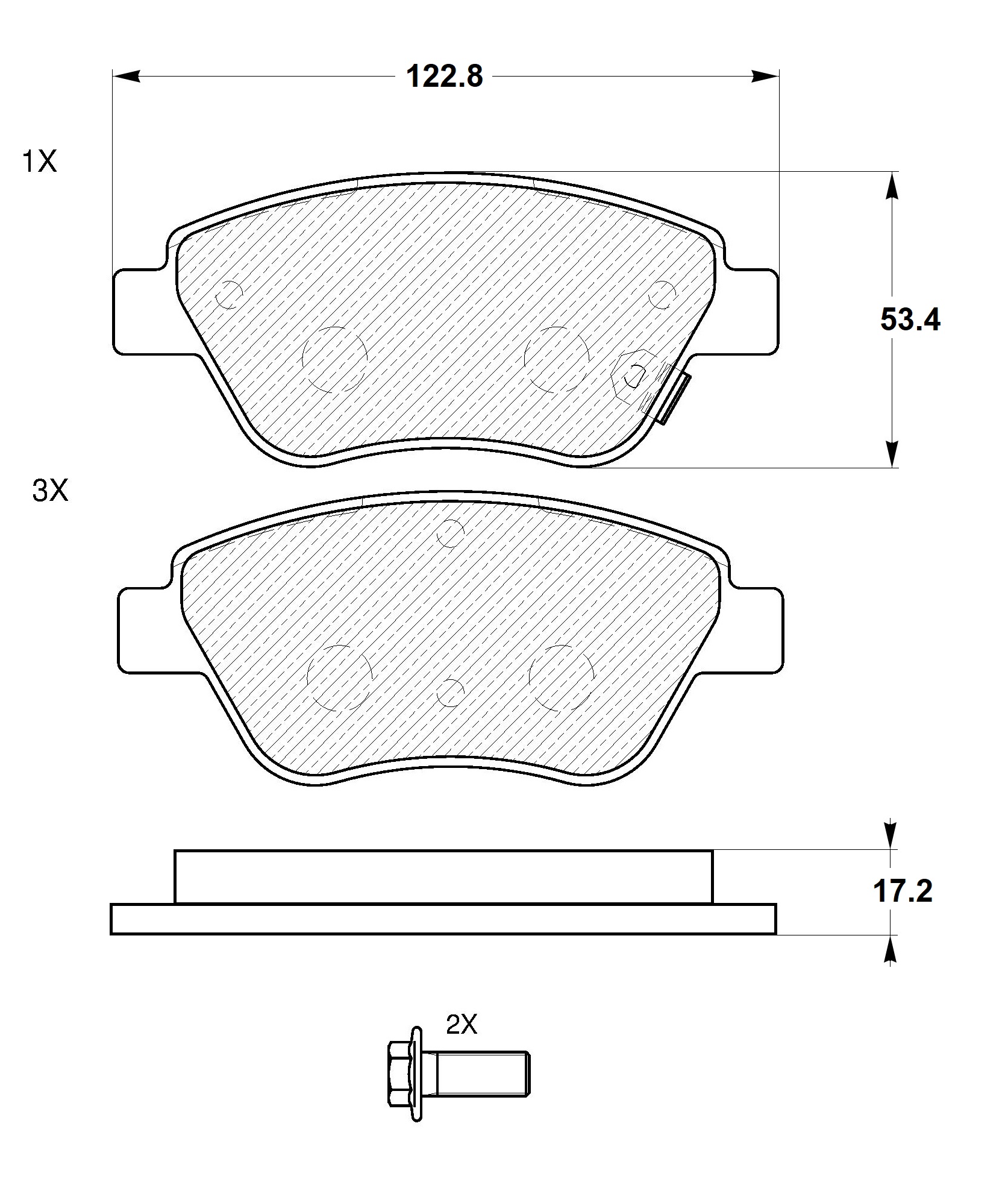 Наименование: Колодки тормозные передние (без датчика + болты) (Смесь Low-Metallic) (FIAT ALBEA/DOBLO (119)/ OPEL