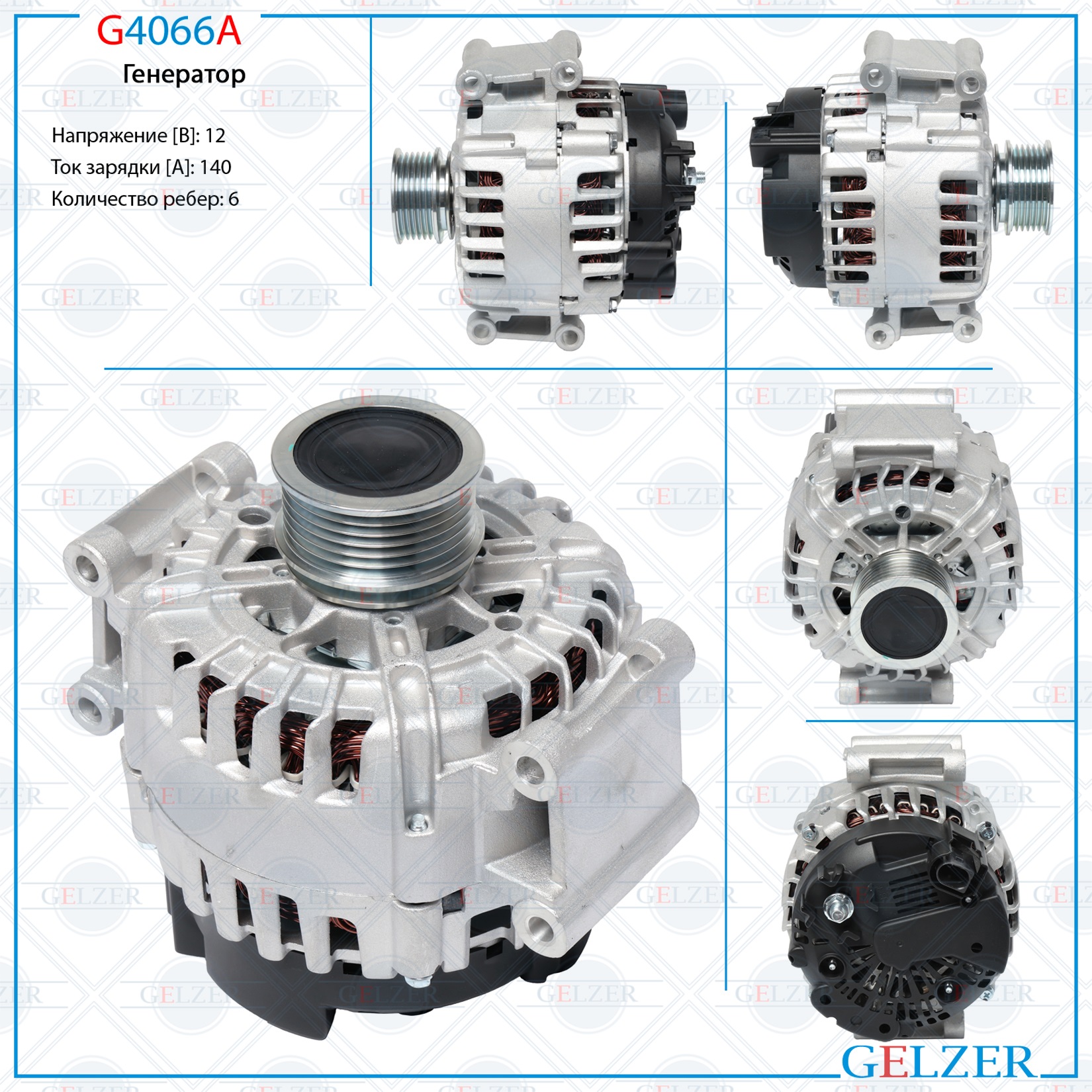 G4066A Генератор 12В / 140А / 6РК / Audi, Seat, Skoda, VW