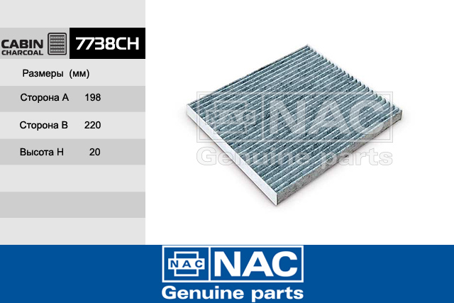 Наименование:фильтр салонный NAC для а/м TOYOTA AVENSIS II/COROLLA 02- угольный 7738-CH