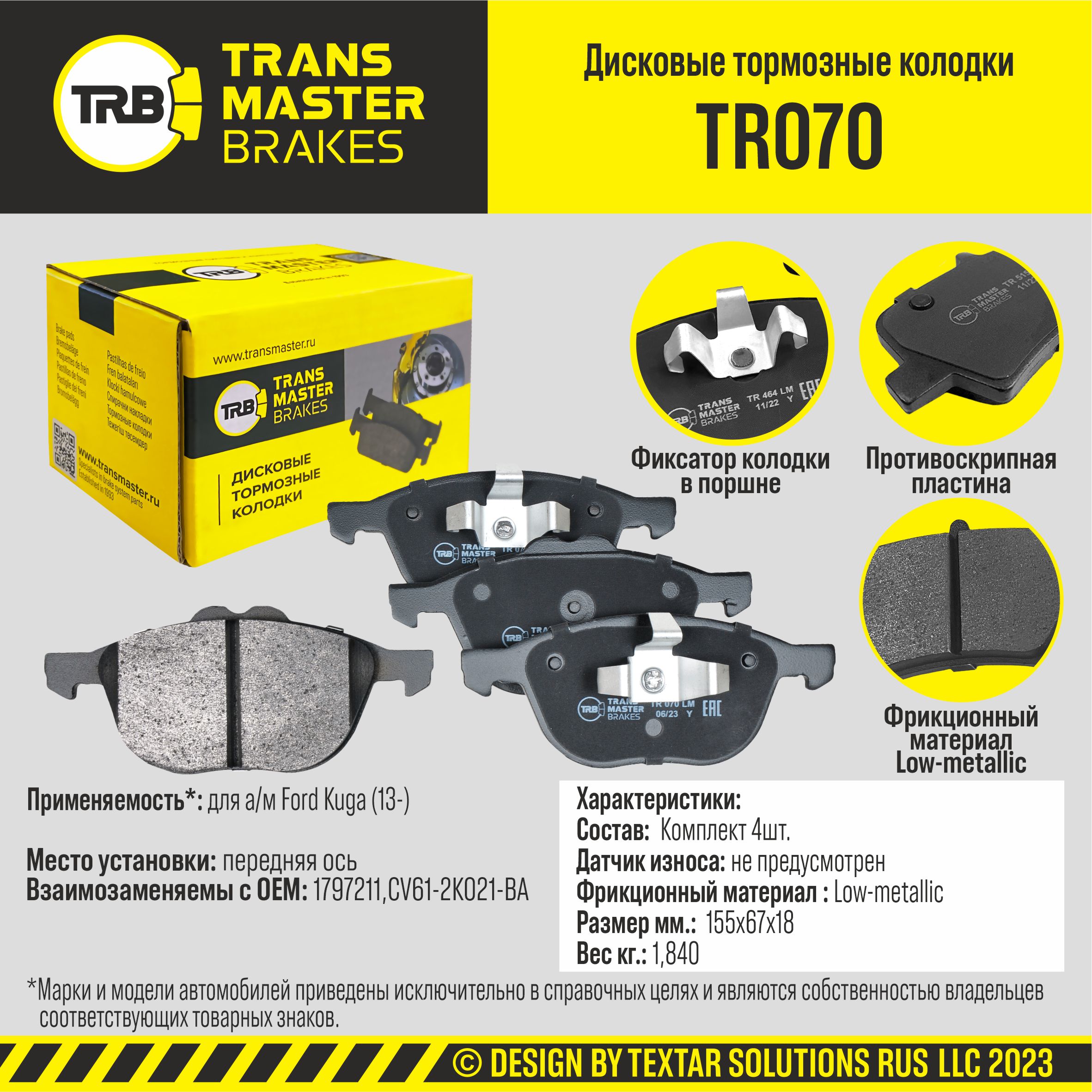 В 2023 году в рамках ребрендинга была обновлена упаковка, теперь детали TRANSMASTER BRAKES®(TRB®) продаются в более привычной для европейских потребителей желтой упаковке.