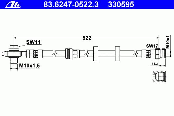 Наименование: 34.21108=PH210352 [6Q0611701C] !шланг торм. пер.\ Skoda Fabia, VW Polo all 99> L=555