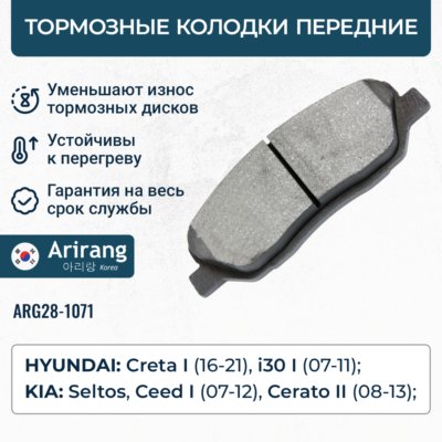 Наименование:ARG28-1071 ARIRANG Колодки тормозные передние HYUNDAI/KIA (CERAMIC)