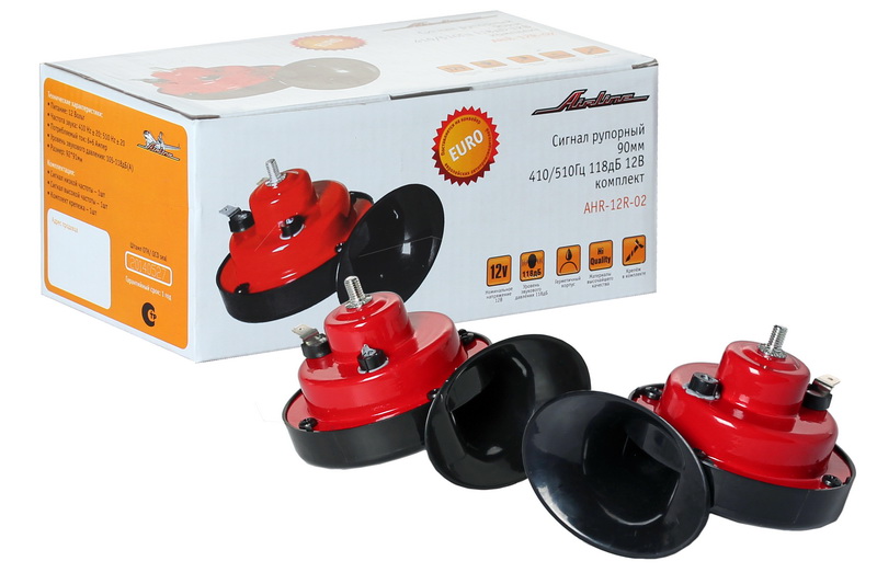 Наименование: Сигнал рупорный 90мм 410/510Гц 118дБ 12В комплект AHR-12R-02