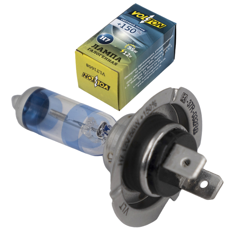 Наименование:Лампа 12 В H7 55 Вт галогенная PX26d +150% Volton VLT1608