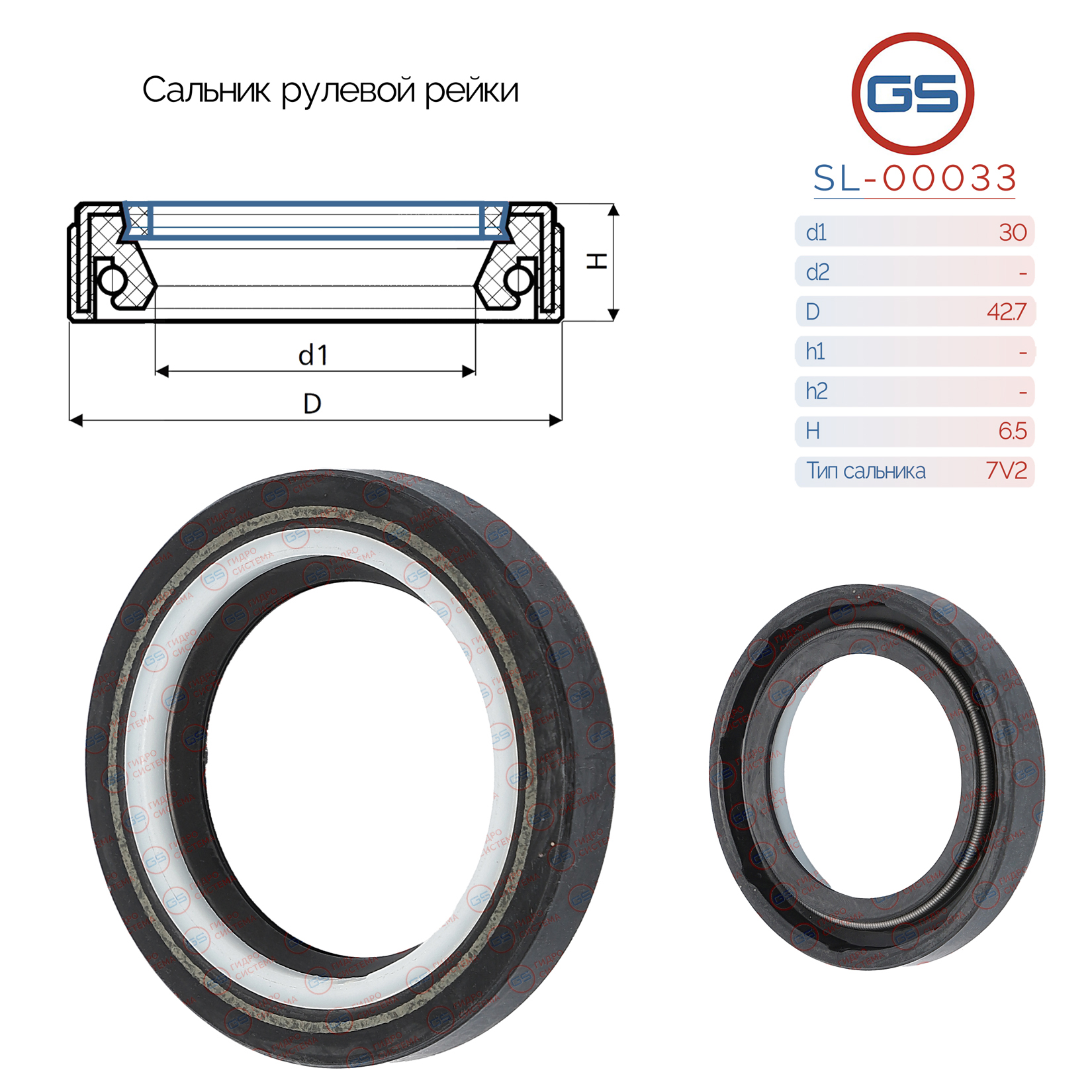 Сальник рулевой рейки 30x42.7x6.5 (7V2)