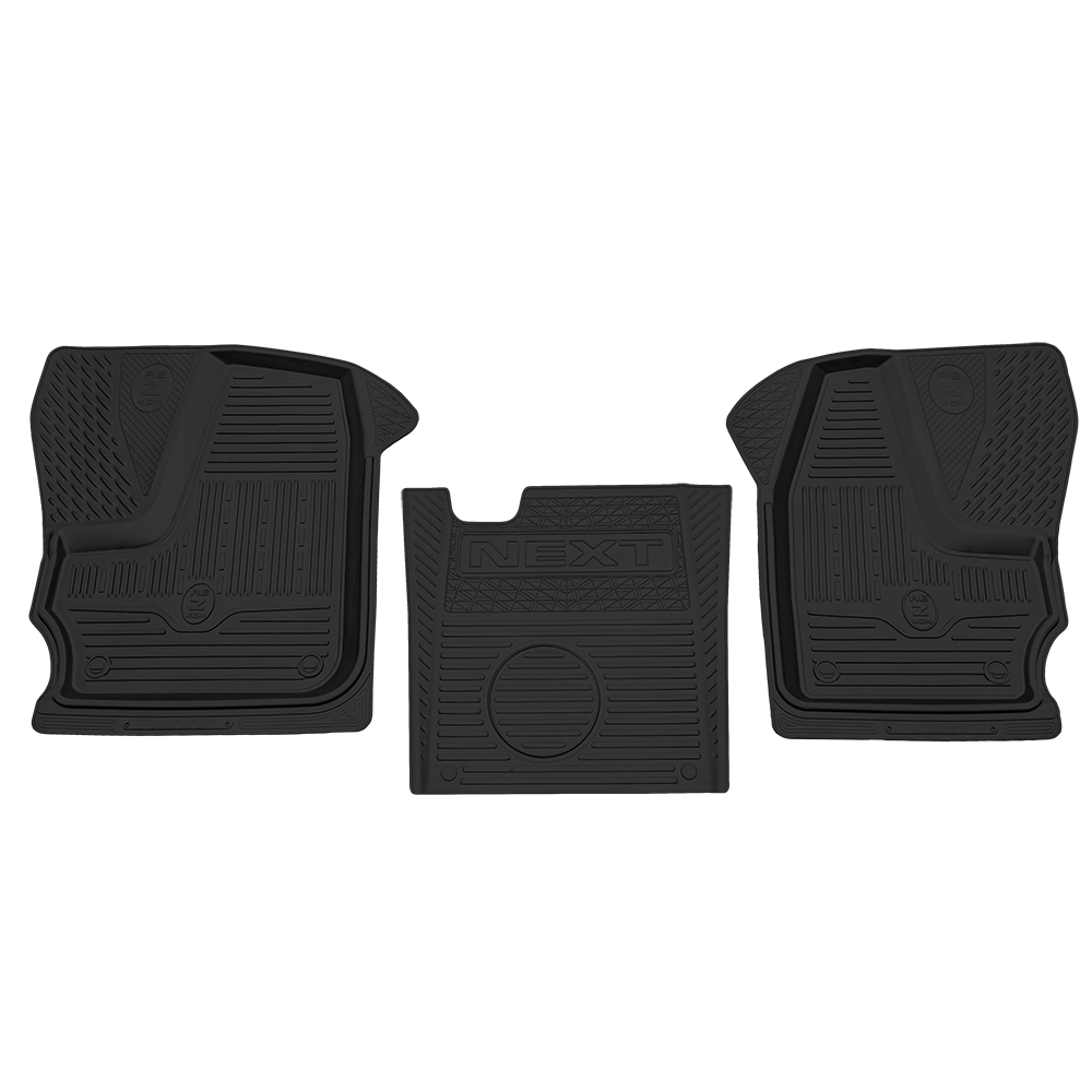 На переднем коврике водителя имеется специальный язычок, который надежно закрывает площадку отдыха ноги водителя. Задние коврики надежно соединены перемычкой, которая дополнительно защищает салон автомобиля при нахождении пассажиров на заднем сиденье. Задние коврики специально разработаны в двух вариантах: с литой перемычкой и целиковые. Коврики предназначены для использования в самых тяжелых климатических условиях.