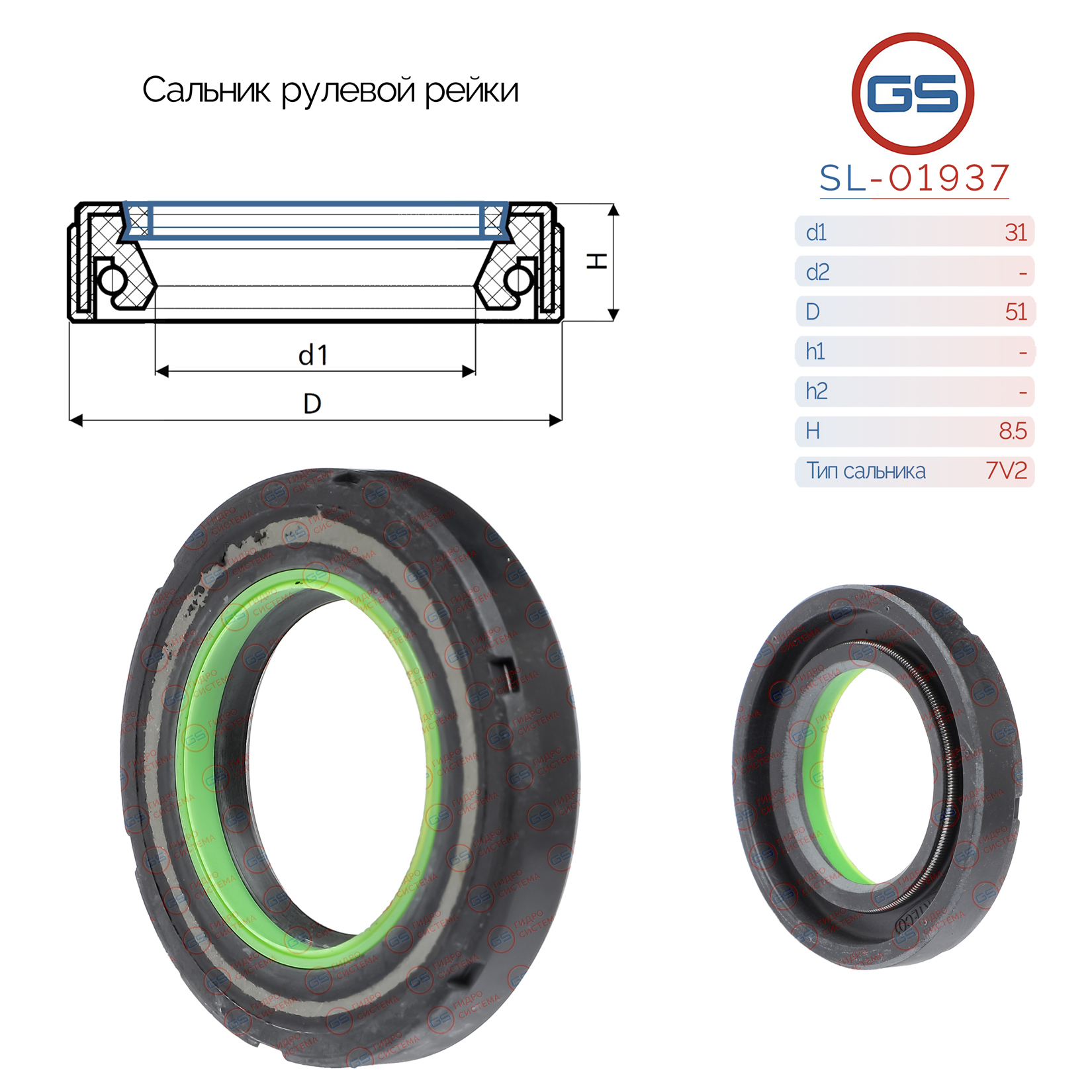 Наименование: Сальник рулевой рейки 31x51x8.5 (7V2)