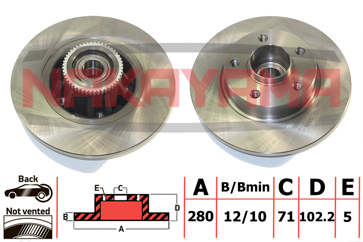 Наименование:Торм.диск задний не вент ((с покрытием и с подшипником и кольцом ABS) Renault Trafic 01- (280X12X5)