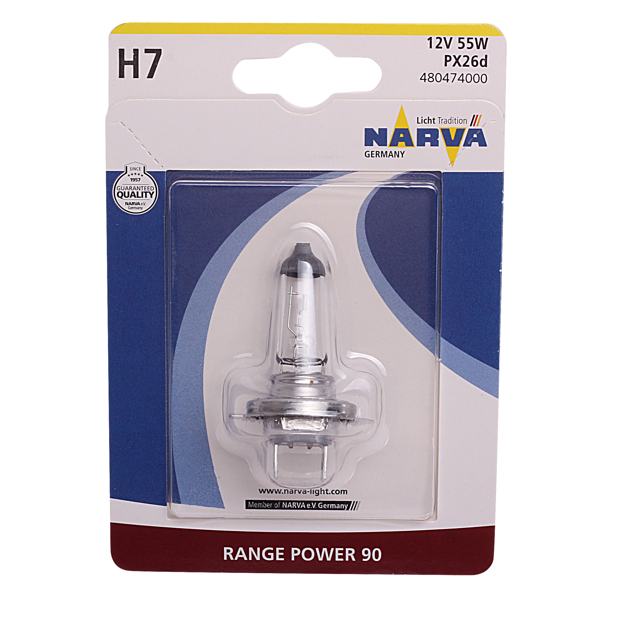Наименование: Лампа 12V H7 55W PX26d +90% блистер (1шт.) Range Power NARVA