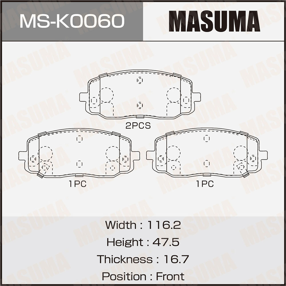 Наименование: Колодки дисковые 'MASUMA' MS-K0060 / NP6024, P30032 / front