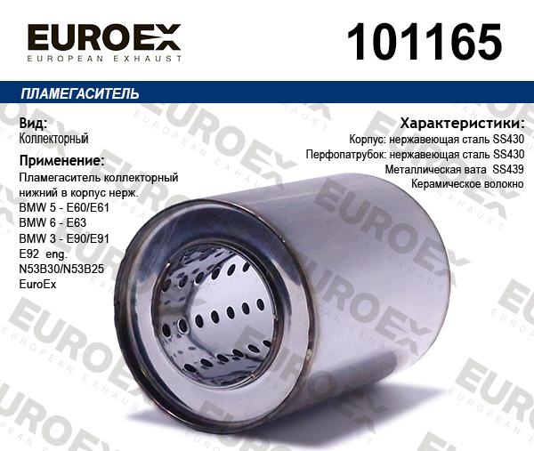 Наименование:пламегаситель коллекторный нижний в корпус нерж.!\ BMW E60/E61/E63/E90/E91/E92