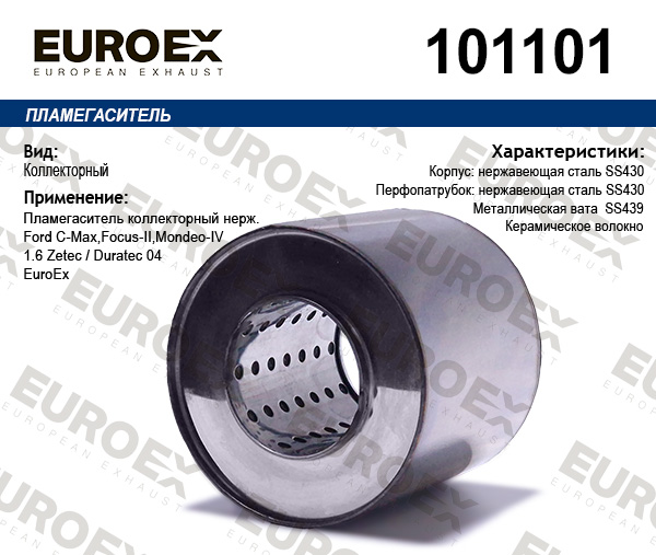 Наименование:пламегаситель коллекторный нерж.!\Ford C-Max/ Focus-II/ Mondeo-IV 1.6 Zetec