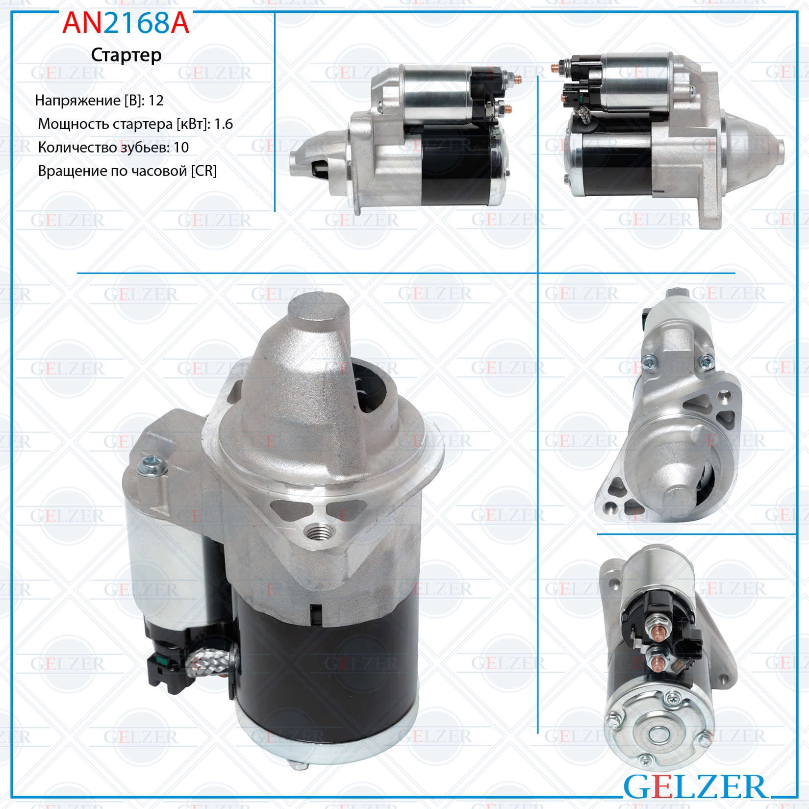 Наименование: AN2168A Стартер 12В / 1.6 кВт / CR / Lexus, Toyota