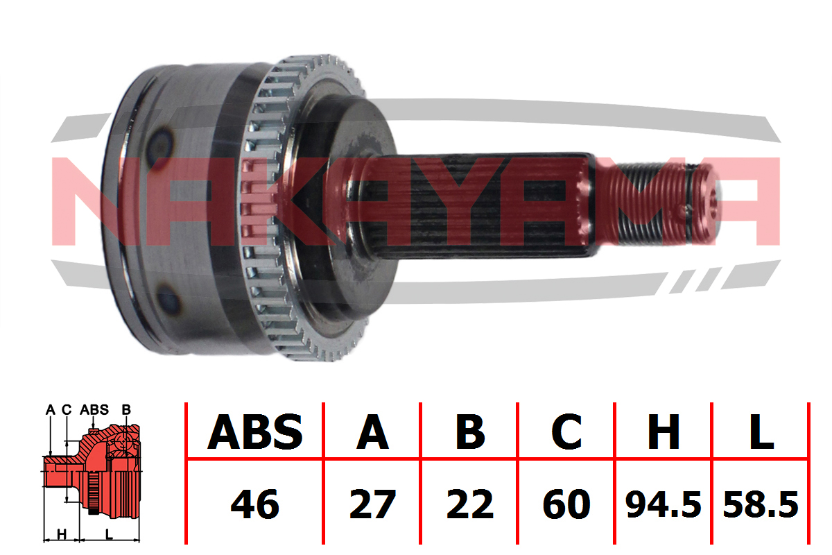Наименование: ШРУС внешн. к-кт Hyndai I30/ KIA Ceed 1.4/1.6 07- (27x22x153x60 ABS:46)