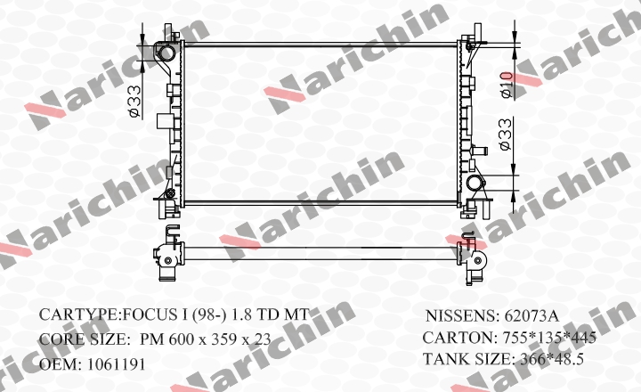 Компания NARICHIN производит свою продукцию под одноименным брендом на современных заводах Юго-Восточной Азии (Китай, Малайзия, Тайвань), качество производства на которых подтверждается сертификатами ISO 9001, ISO 14001, TUV. Часть продукции данных предприятий поставляется в том числе на конвейер автопроизводителей, таких как BYD, FOTON, LIFAN, JAC, GREAT WALL, CHANGAN, CHERY, а также по заказам BOSCH, DELPHI и др. Ассортимент NARICHIN включает в себя востребованные запасные части различных товарных групп для японского, корейского и европейского автопарков. Широко представлены детали ходовой части, расходные материалы, элементы системы охлаждения, резинотехнические изделия и др. Важным направлением развития является постоянное расширение производственной линейки.
